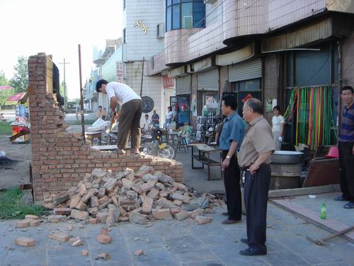 在这次行动中,为确保整治工作见成效,小城镇办公室分为三个组:宣传组、拆违组和清理组,宣传组进一步宣传场的整治文件,使小城镇居民自觉配合;拆违组协助居民拆除违章搭建;清理组帮助居民打扫拆违后的卫生。通过5天的突击行动,共拆除违章建筑物铁棚22个,铁皮房3个,房屋4间,厕所3个,占道货架12个;清理下水道400米,平整垃圾坑120平方米。小城镇街道进一步净化,商业区进一步美化,整个小城镇明显亮化。(李恒美 魏晓清)