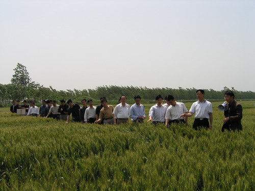 滁州市2007年午季形势分析、品种观摩及水稻产业提升行动实施情况汇报会于5月17日上午在潘村湖农场召开。滁州市农委负责同志和全市各市县区农委分管主任、种子管理站站长及大圹圩农场、潘村湖农场负责同志共50多人参加了会议。与会人员先后现场观摩了农场种子加工基地、小麦种子试验田、播量为5斤的稀繁田和种子生产大田,对田间小麦长势赞不绝口。