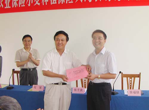 多亩受灾小麦进行了理赔。省农垦集团公司副总经理程军出席理赔仪式,夹沟农场场长韩大鸣代表受灾职工接受了国元农业保险