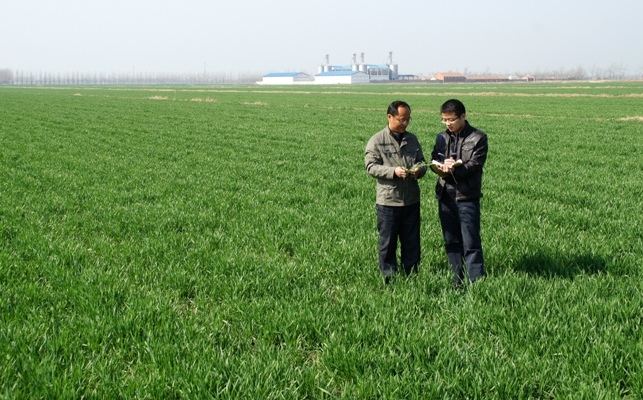 去年秋种以来,淮北地区降雨量较常年偏少,旱情持续发展,给小麦苗期生长带来了严重影响。龙亢农场充分利用配套完善的水利设施,按照喷灌抓全苗、冬灌促壮苗的方案,小麦刚刚播种完毕就组织职工开展两遍喷灌,促进了小麦适时安全出苗;去年12月中旬以来,采取有效冬灌措施,进行肥水运筹,确保了小麦壮苗越冬。由于抗旱工作组织科学,抗旱补充的水分加上光照充足和气温适宜,促进了小麦健壮生长。