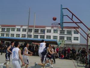 龙亢农场不断丰富职工群众节日文化生活,每年 都举办适合各类文化成次、不同年龄职工参加的各 类文化活动,陶冶了职工情操,推进了安徽农垦集团建 设。图为迎“五.一”庆“五.四”篮球赛场面。 龙亢农场 邵乃昌