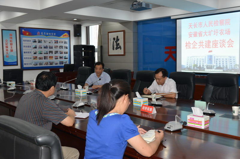 71下午,检企预防职务犯罪共建活动座谈会在天长检察院举行,汪登松、杨朝幸以及农场纪检监察干部,检察院检察长张斌、党组成员陈仪堂以及预防局干警参加座谈。双方签订了预防职务犯罪检企共建协议,正式启动了合作共建工作。会议强调,检企双方要密切配合,扎实开展预防宣传教育活动,建立信息交流和情况通报制度,突出防控重点,完善监督制约机制,提高制度约束力。检企双方均表示,将进一步加强联系,做好职务犯罪预防工作,营造全方位预防格局,促进企业廉洁从业,推动现代企业制度建设。