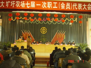 会议还听取了场党委副书记杨朝幸同志作的题为 《团结动员广大职工,为实现农场“十一五”发展 的宏伟目标而努力奋斗》的工会工作报告,听取了 《大圹圩农场经济和社会发展“十一五”规划》及 财务工作、场务公开、招待费、福利费、医疗费使 用情况的报告。