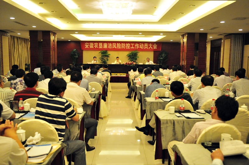 为贯彻落实省委、省政府及省国资委开展廉政风险防控有关精神,全面部署垦区企业开展廉洁风险防控工作,79日下午,安徽农垦集团廉洁风险防控工作动员大会在合肥召开。集团公司领导,各场场长、党委书记、纪委书记,各控股公司董事长、总经理,集团机关副处级以上干部参加了会议。