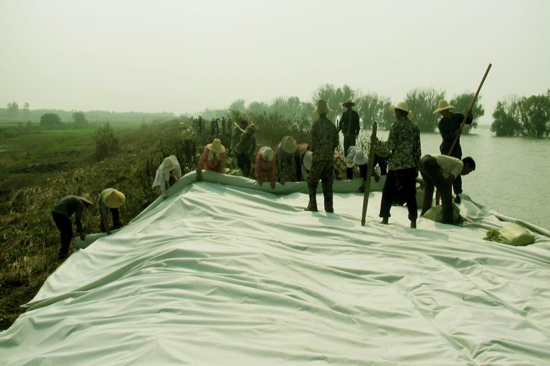 712,二场接到农场防指调集人员支援全场防汛抢险的命令, 200多名职工群众自发组织起来,先后奔赴一场、五场执行除险、抢险和固堤任务,哪里需要哪里去,指挥干啥就干啥,装土、挖石、灌袋、扛包、加固、做标记、堵漏洞。抢险队伍中,47岁的党员郭玉春,从管区主任那儿听到场里要人去一场防汛抢险,来不及和家人打招呼就站到了队伍中,第二天一大早就来到集结地点。他们当中有的放下需要照顾的子女、有的放下正在营业的饭店、有的放下需要照看的病弱老人,但无怨无悔无所求地奔赴抢险一线,从早上7点到晚上6点奋战在堤坝上,湖水泡烂了脚,胳膊晒塌了皮,腿上被蚊虫叮出了包,但没有一个人叫苦喊屈,大堤上一面面党旗格外鲜红,洪水中一枚枚党徽格外闪亮。